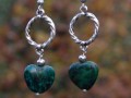 Srdíčka z chryzokolu, kovové komponenty, délka bez háčku 4 cm.