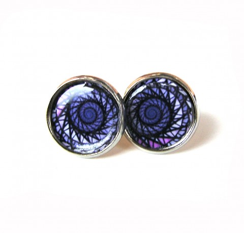 Napichovací náušnice s grafickým motivem překrytým epoxy čočkou.