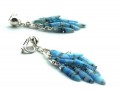 Náušnice jsou tvořeny z uspořádaných světle modrých žíhaných skleněných korálků do tvaru kosočtverce.