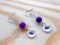 Náušnice se Swarovski přívěsky Classic Cut 10 mm - barva: Crystal AB, Swarovski sluníčky - barva Violet F a fialovým dračím achátem.