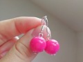 Náušnice jsou vytvořeny z tmavě růžových plastových kuliček. Zavěšeny jsou na stříbrných afroháčcích opatřených gumovými špuntíky proti vysměknutí z ucha. Průměr korálky je 11 mm.
