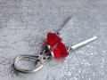 Náušnice s tyčinkou z nerez oceli a skleněným červeným zvonečkem. Uzavíratelné zapínání, celkové délka 5 cm. Všechny komponenty jsou z nerez oceli - vhodné i pro alergiky