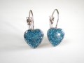 Náušnice se srdíčky zalité křišťálovou pryskyřicí s glitry.