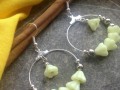 Stříbrné náušnice s vanilkovými skleněnými zvonečky a stříbrnými korálky. Komponenty v barvě stříbra, běžný kov. Průměr kruhu 3 cm, gumové zarážky