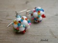 Veselé šité náušničky - bílé kouličky s barevným rokajlem.