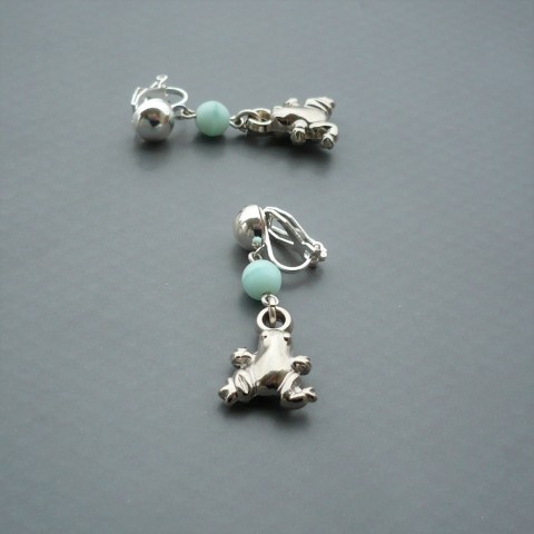 Nejen dětské náušnice z horního světlého mentolově zeleného skleněného korálku a spodní plastové oboustranné žabičky.