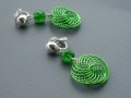 Jednoduché krátké klipsové náušnice (není potřeba mít propíchnutá ouška) jsou tvořeny horním zeleným korálkem s vnitřní ozdobnou rádoby popraskanou strukturou a spodním spirálkovitým kolečkem zelené barvy.