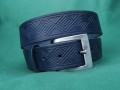 Kožený tmavě modrý opasek z kvalitní české hovězí kůže 4mm silné , ruční práce.