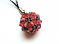 Přívěsek na mobil, šitá kulička ze sluníček Swarovski a černého rokajlu.