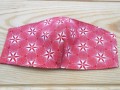 Dvouvrstvá rouška o šířce cca 24 cm a výšce cca 14 cm z látky bílé s červeným optickým klamem složené ze 100% bavlny a s navlečenou kulatou gumičkou za uši jejíž délku si sami upravíte a lze ji vyměnit, protože je navlečena v tunýlku. Kulatá gumička dle aktuální nabídky.