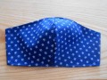 Dvouvrstvá rouška o šířce cca 24 cm a výšce cca 14 cm z látky modré s kytičkami složené ze 100% bavlny a s navlečenou kulatou gumičkou za uši jejíž délku si sami upravíte a lze ji vyměnit, protože je navlečena v tunýlku. Kulatá gumička dle aktuální nabídky.