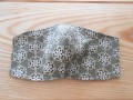 Dvouvrstvá rouška o šířce cca 24 cm a výšce cca 14 cm z látky zelenošedé s ornamenty složené ze 100% bavlny a s navlečenou kulatou gumičkou za uši jejíž délku si sami upravíte a lze ji vyměnit, protože je navlečena v tunýlku. Kulatá gumička dle aktuální nabídky.