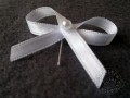 Svatební vývazek z bílé satenové stužky (6 mm), zdobený perličkou 4 mm, doplněný nerez špendlíkem s kapičkou.