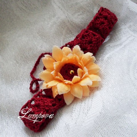 Pro letní dny, kdy slunko hřeje a vlásky větrem vlajou, bude slušet slečnám i maminkám háčkovaná čelenka ze 100% bavlny, ozdobená květinkou s korálkem.