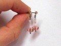 Náušnice z malých růžových korálků, zavěšeny na puzetkovém náušnicovém háčku. Délka bez náušnicového háčkuje cca. 1,5 cm. Háčky opatřené gumovými špuntíky.