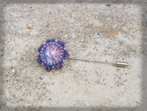 ručně malovaný autorský kabošon, obšitý kvalitním rokajlem Toho