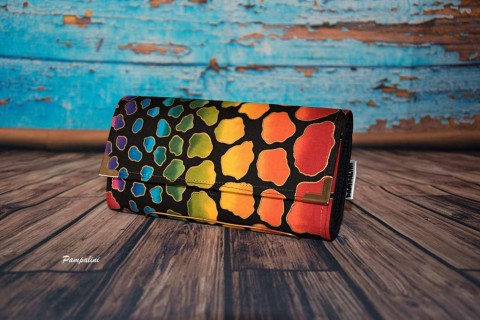 Velká peněženka ušitá z krásné zahraniční designové látky. Pevně vyztužená a opatřená kovovými rohy.
