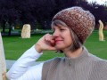 Pletaná čepice v zemitých podzimních tónech s převahou hnědé barvy,
