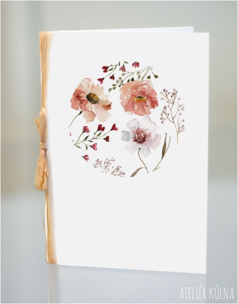 Přání s autorskou malbou je velikosti 14,5 x 10,5 cm. Tisk na kvalitní umělecký papír vyšší gramáže, bílý, hladký, uvnitř bez textu.