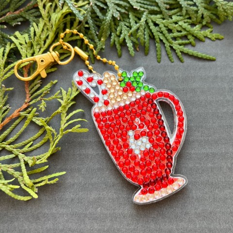 Přívěsek na kabelku, na klíče nebo třeba do auta na zrcátko s vánočním motivem bohatě zdobeného skleněnými šatonovými korálkami technikou diamantového malování. Zdobení je z obou stran a korálky jsou zafixovány speciálním lepidlem.