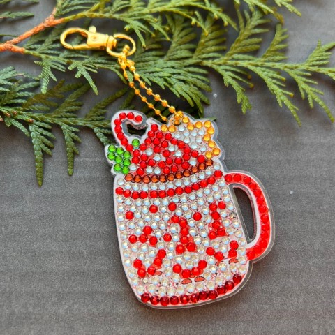 Přívěsek na kabelku, na klíče nebo třeba do auta na zrcátko s vánočním motivem bohatě zdobeným skleněnými šatonovými korálkami technikou diamantového malování. Zdobení je z obou stran a korálky jsou zafixovány speciálním lepidlem.