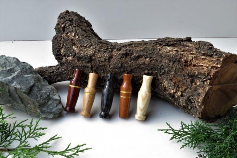 Přívěsky jsou vyrobeny z různých druhů dřeva, příp. přimořené do jiného odstínu.