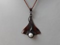 Měděný přívěsek jinanu dvoulaločného , uvnitř je krásná bílá říční perla , vel 10 mm.