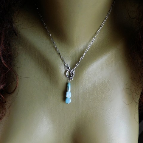 Jednoduchý jemný nerezový řetízek s krásným sekaným larimarem