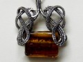 Přívěsek s medovou vinutkou obdélníkového tvaru od firmy Panduro, vytvořený technikou wire-wrapping z antialergického drátu z nerezové oceli. Velikost 3 x 3 cm. Dobře se vyjímá na řetízku ze stříbra, nebo bílého zlata. Řetízek je pouze ilustrační.