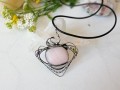 Autorský šperk zhotoven z bezolovnatého cínu se stříbrem, růženínu, kuličky jadeitu, ametystu a drátků.