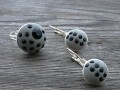 Černé Preciosa kamínky více velikostí jsou usazené na šedém podkladu. Motiv prstenu je vypouklý.