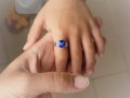 Krásně modrý Swarovski kamínek v odstínu majestic blue je usazený v antialergickém dětském prstýnku.