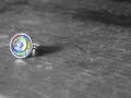Prsten se skleněnou čočkou z dichroického skla 16 mm v univerzální, nastavitelné obroučce.