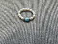 Jednoduchý prstýnek vyrobený z malinkých pravých perliček a modré kuličky larimaru, obchodní název.