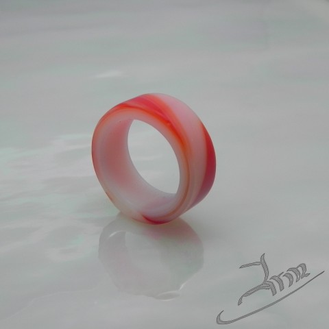 skleněný prsten vytvořený technikou vinutí skla červený žíhaný PP 262 55 tvar - válcový 17,5 mm, velikost 55, šířka 8,5 mm