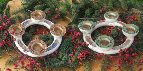 Keramické adventní svícny jsou populárné zejména proto, že vám vydrží léta. Tyto, zdobené roztaveným sklem, jsou z dílny zedkeramika.