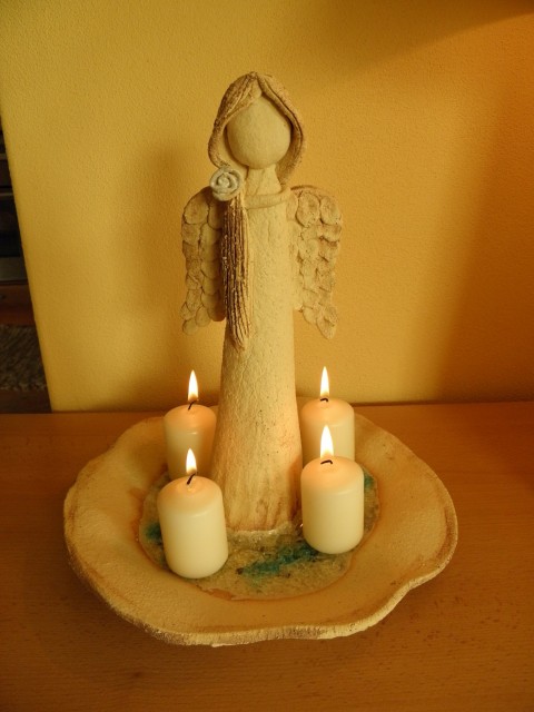 U keramiky ještě chvilku zůstaneme. Tenhle adventní svícen je opravdu netradiční kousek. Nápad je to ale skvělý, provedení rozhodně nezaostává, a tak je z toho neotřelý krásný designový kus, který se může stát středem celé vánoční výzdoby. To, že se obchod autorky jmenuje "inspirace", vás nemůže překvapit. A pokud máte rádi anděly, neváhejte vstoupit.