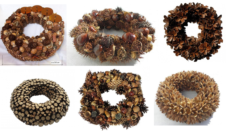 Od hlíny, přes chladný kov k teplému dřevu. Stále stejné téma - netradiční adventní věnce či svícny.