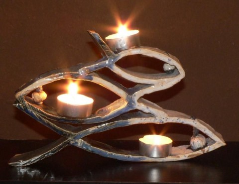 Stále ještě keramika. Světlo nesou jen tři rybky, to, ale neznamená, že neusnesou 4 svíčky. Autorkou je Joha. Její keramika je osobitá s jasně čitelným rukopisem. V obchodě najdete také hedvábné šály, čímž se nenechte zmást, naopak, využijet toho, protože hedvábí na krk je oblíbeným vánočním dárkem.
