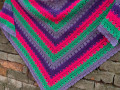 Velký háčkovaný šátek - pléd z tenké dvojité akrylové příze - zelená, fialová, sv. fialová a zářivá růžová.