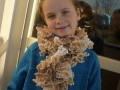 Odskočila jsem si od své velké korálkové lásky, k mé druhé tvořivé lásce. A tou je, jak já říkám, štrikování, takže jsem uštrikovala několik heboučkých volánkových šál a tato je z béžovobílé příze.