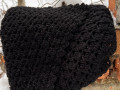 Hrubší háčkovaný šátek - pléd z černé akrylové příze s lurexem.