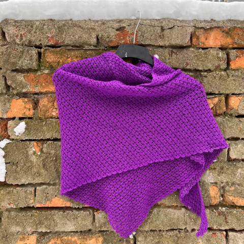 Velký háčkovaný asymetrický šátek - pléd z tenké dvojité fialové akrylové příze.
