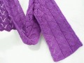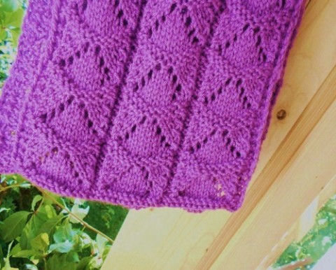 po mnoha hodinách práce vznikla tato krásná fialová šála ručně upletená vzdušným pružným vzorem. Je jemná, zaručeně nekousavá, hřejivá