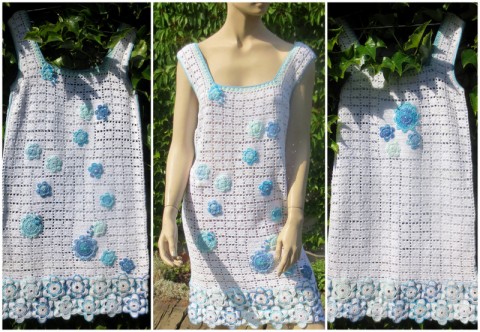 Šaty jsou uháčkovány ze 100% bavlněné příze bílé barvy.