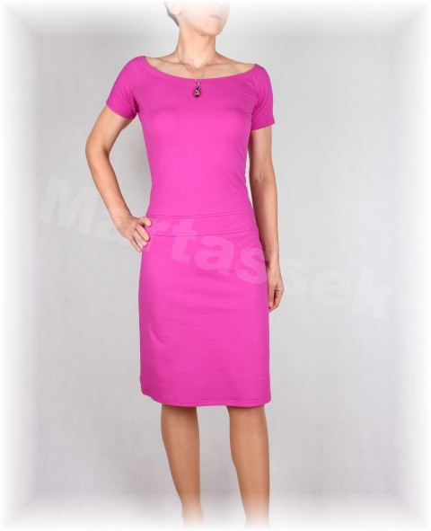 Šaty polopřiléhavého střihu z bavlněného elastického úpletu ve střední gramáži ,na omak velmi příjemné, pohodlný střih,přestřižení ve sníženém pase,krátký 3/4 rukáv.Nafocené šaty jsou v ilustrační barvě-růžové.