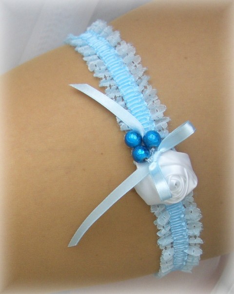 NOVÝ KRAJKOVÝ SVATEBNÍ PODVAZEK bílá / modrá. Podvazek pod svatební šaty, šije se na míru - odpovídající velikost zhotovím na přání - dle konf. vel. kalhot. Po připsání platby na účet zasílám do 1 týdne. Další druhy podvazků v mé nabídce - vyberete-li více zboží, hradí se jen jedno poštovné.