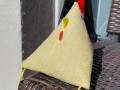 Slepička ušitá ze 100 % z jarní kolekce ušitá ze 100 % bavlněné látky žluté barvy s bílými kvítky různých velikostí,, plněná dutým vláknem, zdobená filcem, plastovými pohyblivými očky, nožkami z oděvní šňůrky a dřevěnými korálky. Slepičku lze použít jako jarní a velikonoční dekoraci. Lze ji opatřit i poutkem a zavěsit.