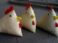 Slepička ušitá ze 100 % bavlněné látky - laděná do světle hnědé - béžové, plněná dutým vláknem, zdobená filcem a plastovými pohyblivými očičky. Výška slepičky je cca 9 cm, šířka cca 8 cm a délka 8 cm.