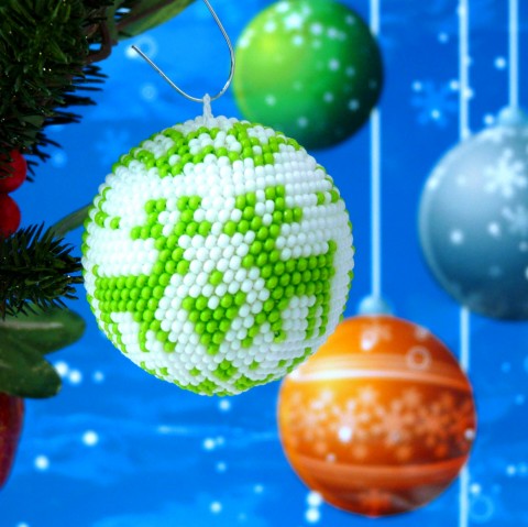 Podklad kouličky je v bílé barvě, ve které jsou zelení sobi